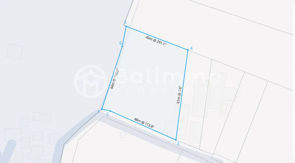 This leasehold land is located in a prime area near Balangan Beach, Bali. Situated in a pink zoning area, the land is ideal for a villa development or tourism-related project, surrounded by well-known resorts and popular beaches in South Bali. Location Highlights • 1 minute drive to La Joya Biu-Biu Resort • 3 minutes drive to Balangan Beach • 5 minutes drive to Dreamland Beach • 15 minutes drive to Garuda Wisnu Kencana (GWK) • 20 minutes drive to InterContinental Resort • 35 minutes drive to Ngurah Rai International Airport Land Details • Land Size : 28 are (2,800 m²) • Length : ± 61 meters • Width : ± 45 meters • Location : Near Balangan Beach, Bali • Ownership : Leasehold • Lease Term : Minimum 25 years • Zoning : Pink Zone • Topography : Flat land • Access Road : ± 4 meters • Split : No • Price / Are : IDR 35,000,000 / year BALIMMO PROPERTIES - Contact us for more information