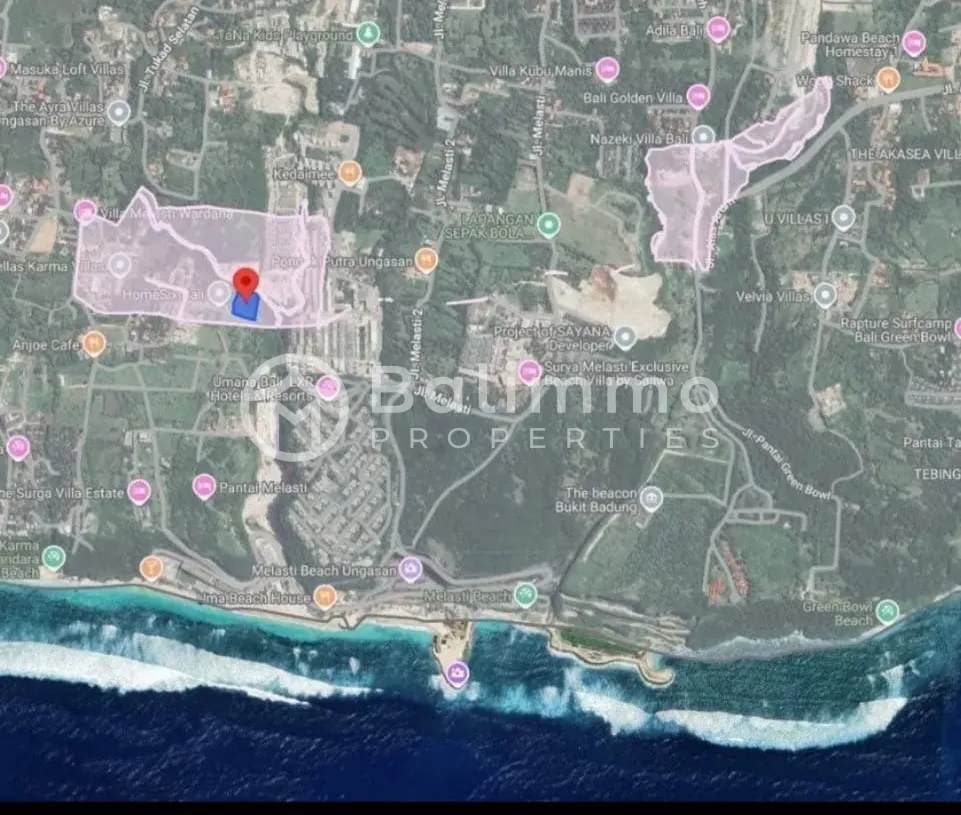 Land for Sale – Freehold 2.93 Hectar in Ungasan, Bali A rare opportunity to acquire 2,93 Hectar of freehold land in a highly desirable location in Ungasan, just moments away from the famous Karma Kandara Beach. This land offers a beautiful ocean view and is surrounded by many established villas, making it an excellent location for developing a villa complex or a premium residential project. Nearby Attraction 5 minutes to Karma Kandara Beach 10 minutes to Melasti Beach 20 minutes to Savaya 30 minutes to Uluwatu Temple Key Features: Land size: 2.93 Hectares (2,932 are ) Split: No View : Ocean Surrounding: Villas Access Road : 4 meters wide Permit : SHM-Sertifikat Hak Milik Zone : Pink Zone Asking Price Per Are: IDR 900,000,000