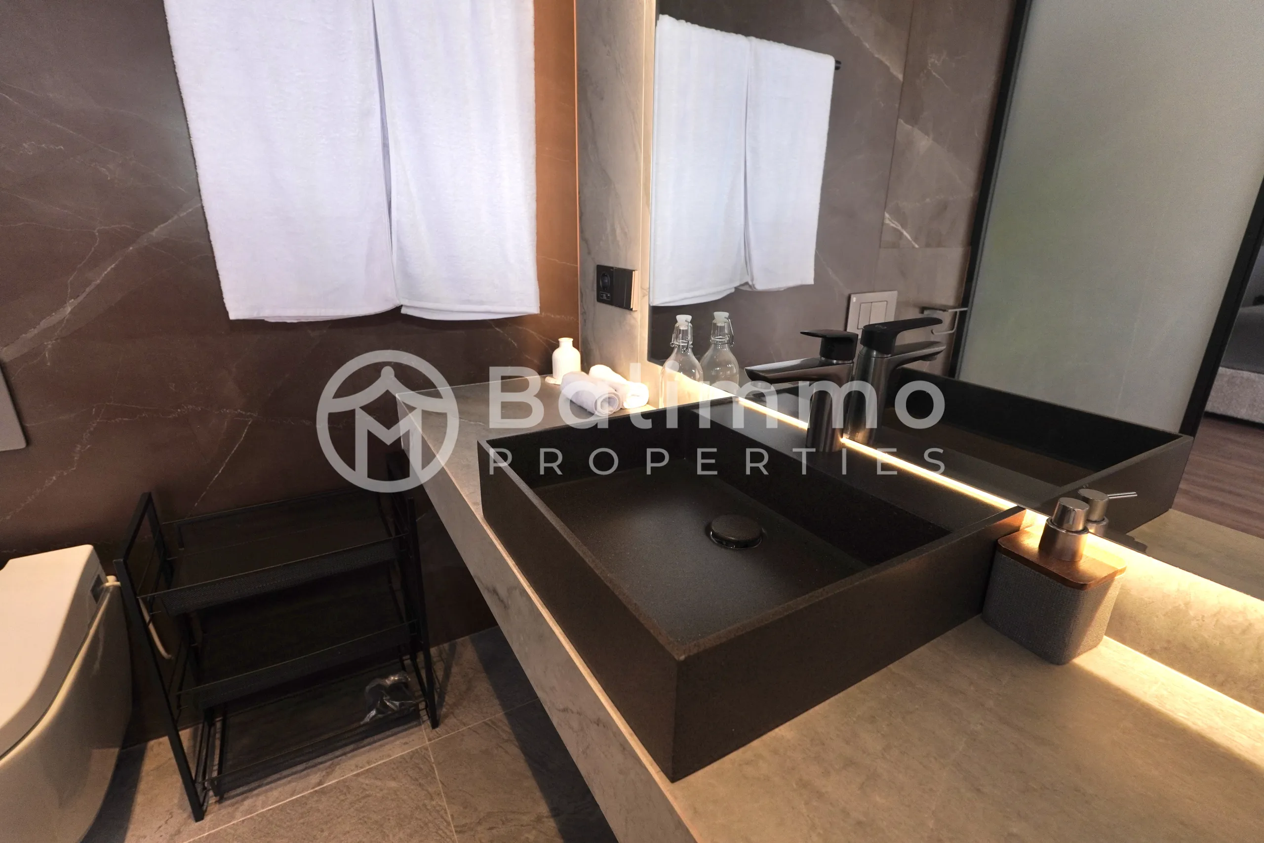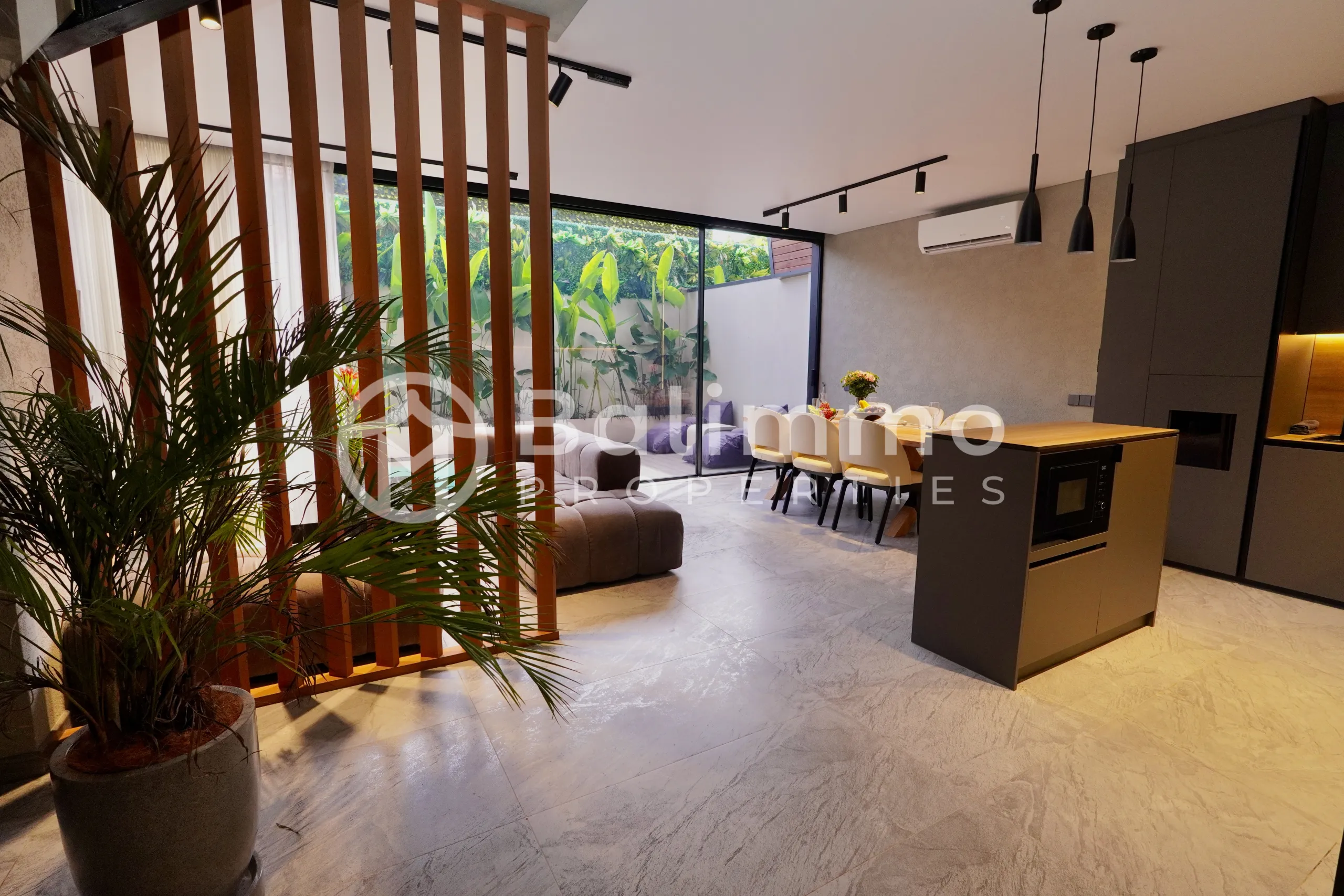 Blue Townhouse – 2 Bedroom Townhouse (Yellow Zone) Located in a quiet residential area, this townhouse offers convenient access to cafés, local shops, and main roads, creating a calm environment ideal for long-term living. The neighborhood is just 3 minutes from Nook, 4 minutes from 7AM Bakers, 5 minutes from Satu Satu Coffee, 6 minutes from Liga Tennis Center, and 7 minutes from Soham Wellness, ensuring a comfortable and well-connected daily routine. Set on 90 m² of land, the property features a private pool with a pool deck, durable materials, and an easy-care garden. The architecture is practical, modern, and designed for low maintenance. The 105 m² building benefits from abundant natural light, cross ventilation, and a functional layout. The ground floor includes an open living area and a fully equipped kitchen, while the upper level offers two bedrooms with private bathrooms, built-in wardrobes, air conditioning, and premium fixtures. The townhouse is delivered fully furnished with Western-standard finishing. Additional Information Leasehold: 30 years + 30-year extension Zoning: Yellow Zone (Residential) Permits: SLF / PBG Bedrooms: 2 Bathrooms: 2 BALIMMO PROPERTIES – Contact us to schedule a visit.
