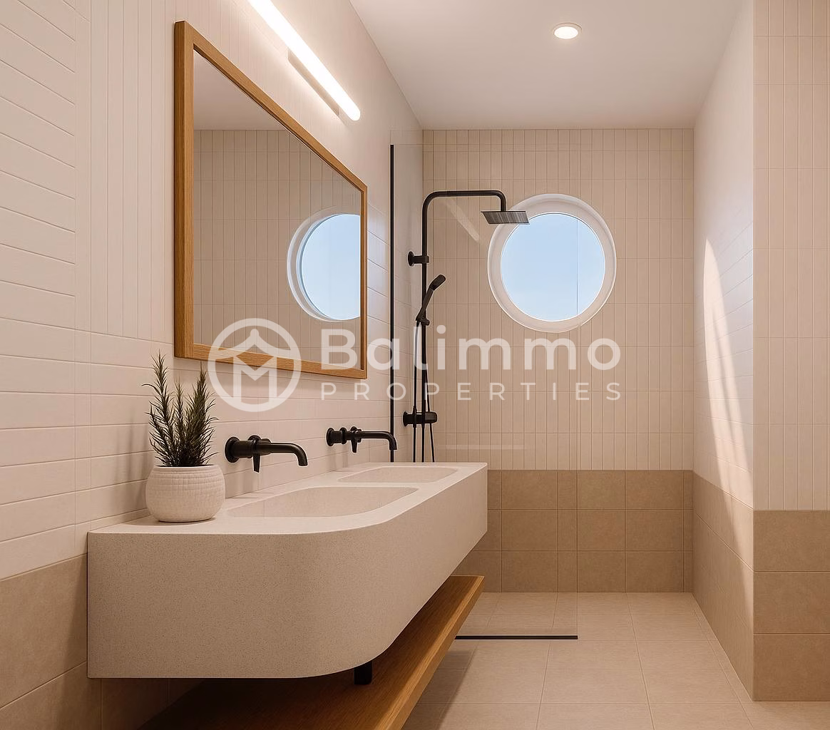 Leasehold Villa in Melasti Uluwatu – Semi Furnished Surroundings Located in a quiet area of Melasti, Uluwatu, close to popular amenities: 2 min to cafés and restaurants 4 min to gym 5 min to supermarket 7 min to Melasti and Karma Beach Clubs 10 min to Kuta Golf 12 min to tennis and padel courts 13 min to Sidewalk Mall 17 min to hospital 40 min to the airport Built on 117 m² of land, the villa offers a 9 m² swimming pool, outdoor shower, balcony, private carport, and parking for one car and motorbikes. Space for a washing machine is also provided. Interior The 110 m² villa includes two bedrooms with built-in wardrobes, two bathrooms, and a guest restroom. The enclosed living area features air conditioning and a fitted kitchen with modern appliances. Inventory Highlights 3 AC units (2 bedrooms, 1 living room) Modena Liscio stove or equivalent Ariston kitchen sink Toto sanitary fittings Shimizu pump and water heater 1050 L + 3000 L water tanks Wooden interior doors, UPVC windows Ceramic flooring Additional Information Land: 117 m² Building: 110 m² Pool: 9 m² Semi furnished Leasehold: 25 years – USD 139,000 Leasehold: 40 years – USD 155,000 Add 20% for fully furnished option Completion : March 2026 Permit: SLF Zoning: Yellow Zone BALIMMO PROPERTIES – Contact us to schedule a visit.