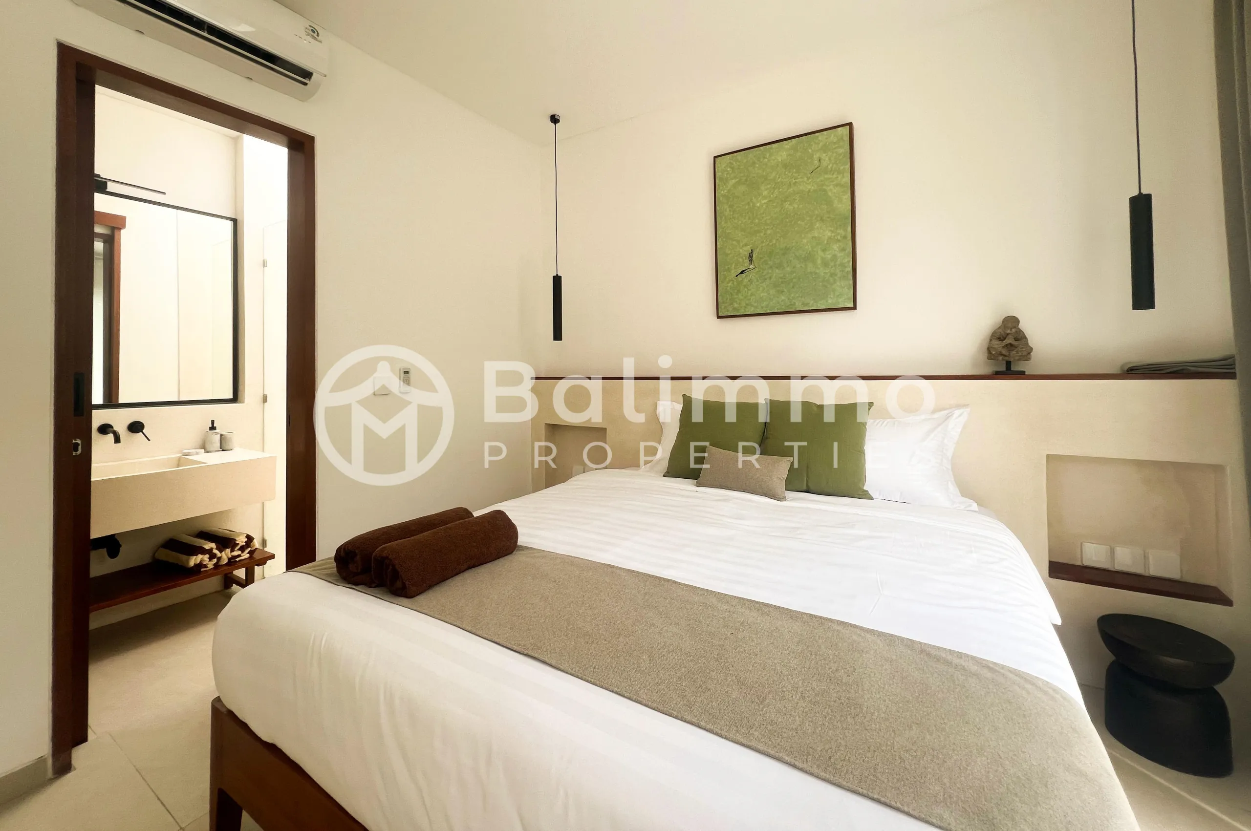 Located in the Balangan area, this villa is set in a quiet residential environment with convenient access to daily amenities. Uluwatu Fitness Center is approximately 5 minutes away, Nirvana Strength Gym around 7 minutes, and CrossFit Jimbaran / Southside Fitness about 10 minutes by car. Popular restaurants and cafés are also nearby, including Cuca Restaurant Jimbaran (±5 minutes), OPIA Dining Destination (±7 minutes), Balique Restaurant (±6 minutes), Jimbaran Bay seafood cafés such as Menega Café (±10 minutes), and Kedai Kopi Jimbaran (±5 minutes). The exterior features a private 2.5 x 5 m swimming pool, offering a practical outdoor space with good privacy and low maintenance. The interior consists of 2 bedrooms with en-suite bathrooms, one additional powder room, and a functional living layout suitable for both personal use and rental purposes. The villa is located in a yellow zoning area and is offered on a leasehold title with 24 years remaining, with the possibility to extend. The property is fully permitted with an IMB. BALIMMO PROPERTIES – Contact us to schedule a visit.