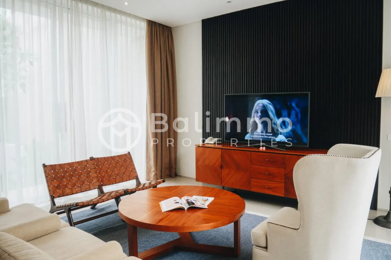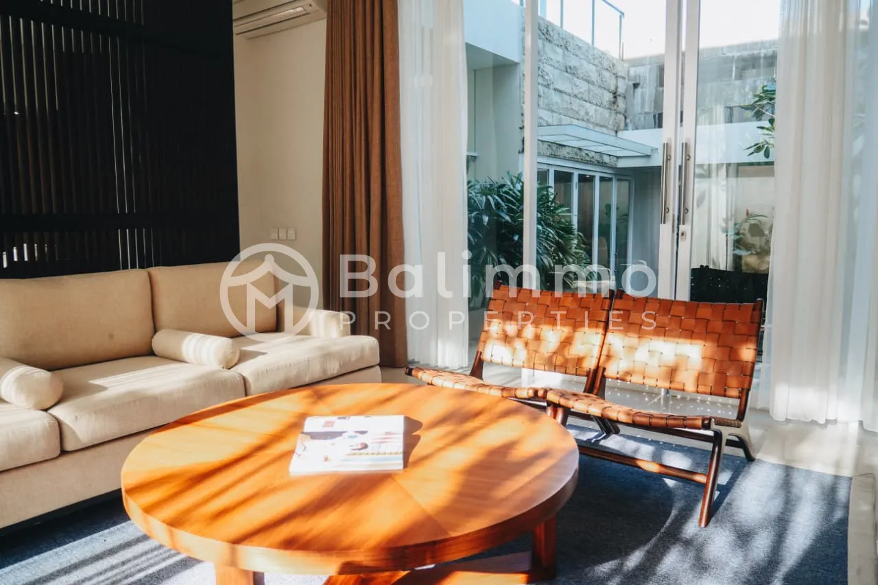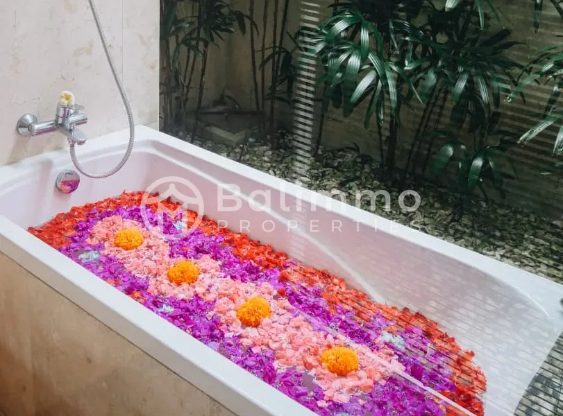 Located on Jalan Dharmawangsa in Nusa Dua, this villa is set in a developing residential area surrounded by private villas. The property is close to Bali Tourism Polytechnic and within short driving distance to Pandawa Beach and Melasti Beach. The environment offers a balance between residential privacy and convenient access to beaches and amenities. The villa includes 3 bedrooms and 2 bathrooms. The layout consists of one main kitchen and one pantry, providing practical separation for daily use and entertaining. The property is sold fully furnished, excluding paintings, carpets, glasses, and plates. The interior design is contemporary, with well-proportioned living spaces and good natural light throughout. Key details : • Land zone: Yellow zone (residential) • Permit : Hak Milik • Building size : 280 sqm {two storey villa} • Land size : 231 sqm • Price : IDR 6.877.255.000 • Freehold BALIMMO PROPERTIES – Contact us to schedule a visit.
