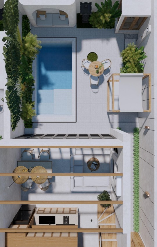 Villa C – 2-Bedroom Leasehold Villa with Ocean Views Near Cemongkak Beach Surroundings / Location Located in Pecatu, Villa C is part of a boutique collection of ocean-view villas just minutes from Cemongkak Beach. The area offers a balance of tranquility and accessibility, with nearby white-sand beaches such as Dreamland, Bingin, and Padang Padang. Uluwatu Temple, El Kabron, Single Fin, and GWK Cultural Park are also within easy reach, along with international restaurants, beach clubs, and wellness retreats. Exterior This modern villa features a private swimming pool of 9.91 m², landscaped with tropical greenery, and a spacious hardscape of 42.79 m². An ocean-view terrace provides an ideal setting for sunset relaxation. Contemporary architecture blends with functional outdoor spaces, ensuring privacy and comfort. Interior The villa offers 2 spacious bedrooms with ensuite bathrooms across a total building size of 140.72 m². The open-plan living and dining areas are bright and airy, complemented by a modern kitchen and high-quality finishes. Large windows maximize natural light and highlight the partial ocean views, creating a sleek yet practical layout for everyday living. Additional Information • Leasehold: 25 years + 25-year extension option • Estimated completion: December 2025 • Pre-sale price (unfurnished): IDR 3,200,000,000 • Completed price: IDR 3,800,000,000 • Zoning. : Pink • Permit : Hak Milik • Building size breakdown: • Ground floor: 39.69 m² • First floor: 48.33 m² • Swimming pool: 9.91 m² • Hardscape: 42.79 m² BALIMMO PROPERTIES Contact us to schedule a visit.