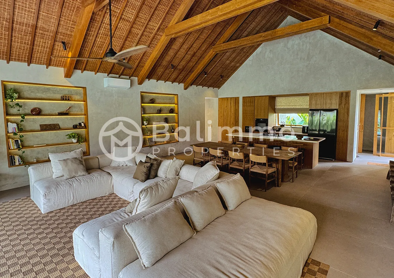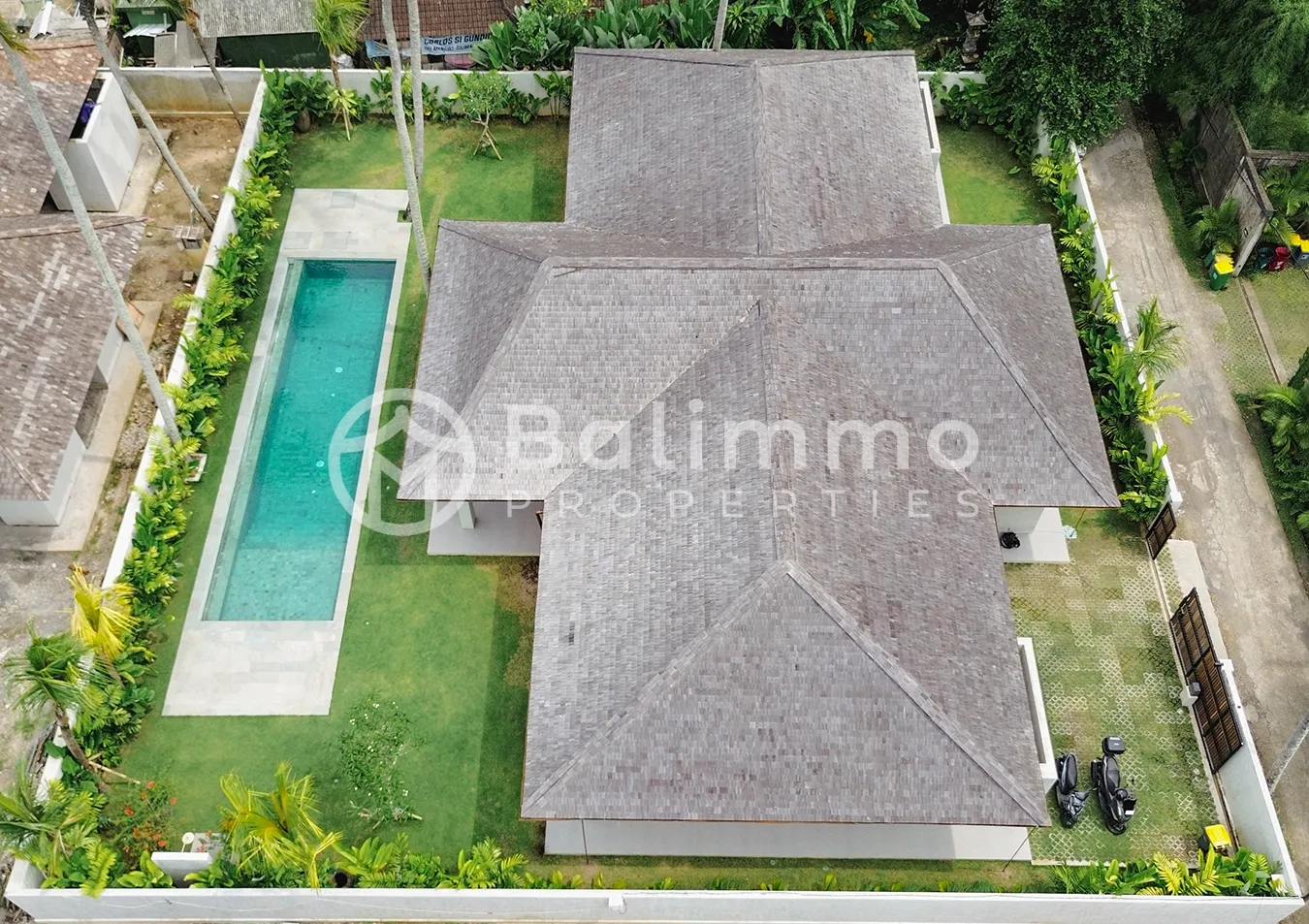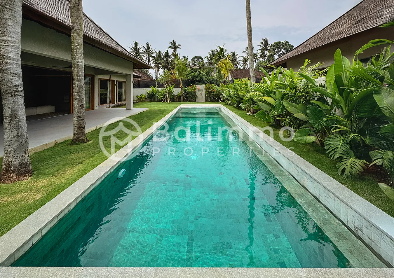 Located in Kaba-Kaba Village, Kediri, Tabanan, this villa is set in a quiet and residential area surrounded by rice fields and traditional Balinese landscapes. The neighborhood is known for its calm atmosphere and family-friendly environment, popular among expatriate residents. It offers a peaceful alternative to Canggu while remaining well connected. The villa is part of an exclusive residential community composed of twin villas, accessed via a private road attached to the lease. The exterior features a modern tropical design integrated into its natural surroundings. The property includes a dedicated parking area and secure access, offering privacy and comfort within a controlled residential enclave. The layout includes a main entrance leading to a bright living area, a dining space, and a fully equipped kitchen. Interior spaces are designed for natural light and fluid circulation, with quality materials throughout. The master bedroom features a walk-in wardrobe and an en-suite bathroom. Additional functional spaces include a hallway, laundry room, storage area, and multiple bathrooms. The villa is delivered fully furnished and designed for immediate occupancy. Location Highlights • Pererenan Beach and Canggu - 15 minutes • Tanah Lot Temple - 15 minutes • Nuanu Creative City - 20 minutes • Green School – 15 minutes Key Details • Lease duration: 27 years with priority extension • Land size: 850 sqm • Building size: 320 sqm • Bedrooms: 4 • Bathrooms: 5 • Swimming pool: 14 m x 3.5 m • Zoning: Yellow • Certificate: SLF • Access: Private road • Furnishing: Fully furnished • Price: IDR 9.883.500.000. BALIMMO PROPERTIES – Contact us to schedule a visit.