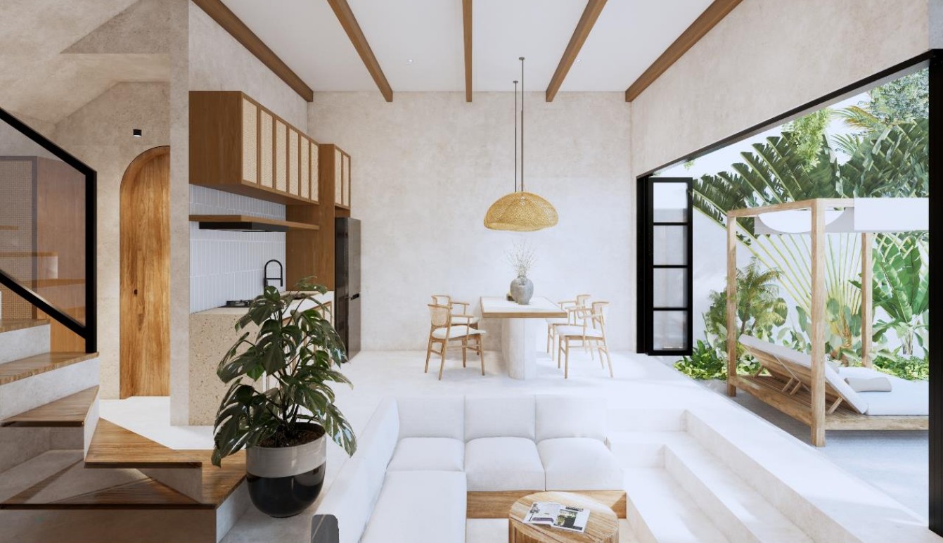 Villa B – 2-Bedroom Leasehold Villa with Partial Sea View in Pecatu Surroundings / Location This villa enjoys a prime location close to Bali’s most renowned beaches. Pantai Cemongkak is just a short walk away, while Dreamland, Bingin, and Padang Padang are all within minutes. Uluwatu Temple, El Kabron, Single Fin, and GWK Cultural Park are nearby, along with international restaurants, beach clubs, and cultural attractions. Exterior Villa B features a private swimming pool of 9.91 m², slightly larger than Villa A, complemented by a landscaped hardscape of 42.79 m². Its outdoor design emphasizes relaxation and leisure, with modern architectural lines that blend tropical living with contemporary style. Secure access and a practical layout enhance the functionality of the villa’s exterior spaces. Interior The villa offers 2 bedrooms with ensuite bathrooms within a total building size of 140.72 m². Bright open-plan living and dining areas are enhanced by high ceilings and large windows, bringing in natural light and highlighting the partial sea views. The modern kitchen and quality finishes create a comfortable and practical home for personal living or rental use. Additional Information • Leasehold: 25 years + 25-year extension option • Estimated completion: November 2025 • Pre-sale price (unfurnished): IDR 3,200,000,000 • Completed price: IDR 3,800,000,000 • Permit. : Hak Milik • Zoning. : Pink • Building size breakdown: • Ground floor: 39.69 m² • First floor: 48.33 m² • Swimming pool: 9.91 m² • Hardscape: 42.79 m² BALIMMO PROPERTIES Contact us to schedule a visit.