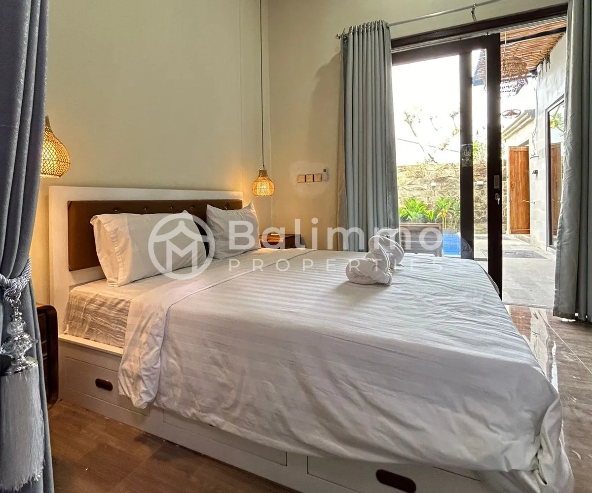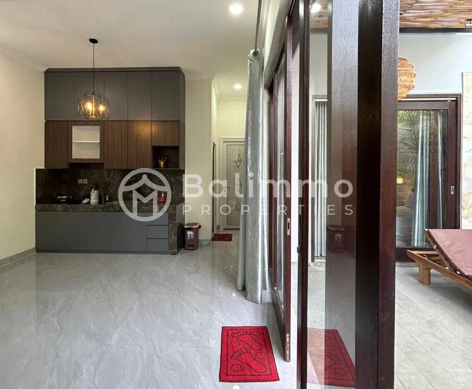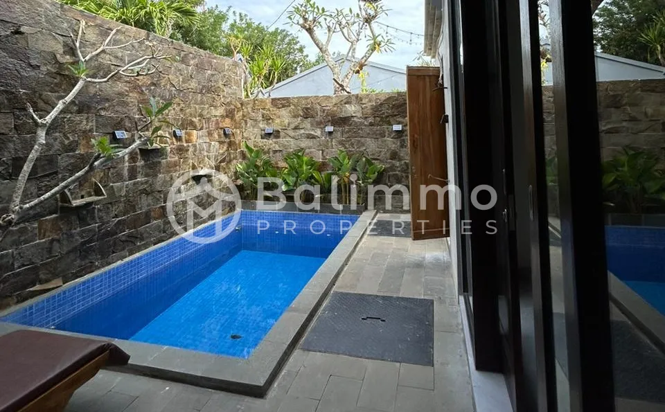 Located in the peaceful village of Kutuh, Nusa Dua, this Villa Tenang offers a serene residential setting just minutes from Pandawa and Melasti Beaches. The area provides easy access to popular beach clubs, local cafes, international dining, Uluwatu Temple, and Ngurah Rai International Airport. Surrounded by lush greenery, the neighborhood blends Balinese charm with modern convenience. The property is set on a quiet street with secure gated access. A landscaped tropical garden surrounds the villa, featuring a private swimming pool. The architectural style is a mix of contemporary and tropical elements, creating a harmonious blend with the natural environment. Parking space is available on-site. The villa offers spacious bedrooms with en-suite bathrooms, a fully equipped modern kitchen, and an open-plan living and dining area designed to maximize natural light and airflow. High-quality finishes and materials create a comfortable yet refined living environment, perfect for both relaxation and entertaining. Additional Information • Ownership: Freehold • Land Size: 100 sqm • Building Size: 62 • Year Built: 2024 • Fully furnished BALIMMO PROPERTIES – Contact us to schedule a visit.
