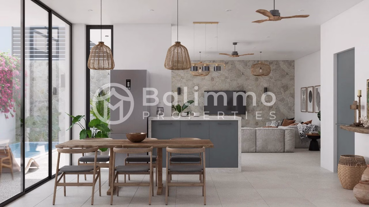 Modern 2-Bedroom Villas for Sale – Leasehold 30 Years Located in the peaceful Jimbaran area, these villas offer a strategic setting close to both lifestyle and educational hubs. Within 5 minutes’ drive, you can reach Jimbaran Shopping Mall and Udayana University, while GWK Cultural Park is just 10 minutes away. Balangan Beach is 25 minutes, Dreamland Beach 30 minutes, Padang Padang 35 minutes, Savaya Beach Club 20 minutes, and the airport 45 minutes. This development consists of four villas with identical designs but individual landscaping, ensuring a sense of harmony and privacy. Each villa combines modern architecture with tropical accents and will be delivered fully furnished upon completion. The construction is currently in progress and scheduled to be finished within one month. Each villa features two bedrooms and two bathrooms with a practical and comfortable layout. The interiors are designed with quality finishes, a modern kitchen, and a bright living area that opens to the garden and pool, creating an ideal space for relaxation or rental investment. Additional Information Villa detail information : > land size 185m2 > building size 150m2 > Swimming pool > closed living room > Fully Furnished > Kitchen equipment > Air conditioner > water heater > Garage Status: Under construction (completion in 2 month) Zoning Yellow - Leasehold 30 Years + extension 25 Years , Permit ( SLF ) Asking Price : IDR 4,600,000,000 BALIMMO PROPERTIES – Contact us to schedule a visit.